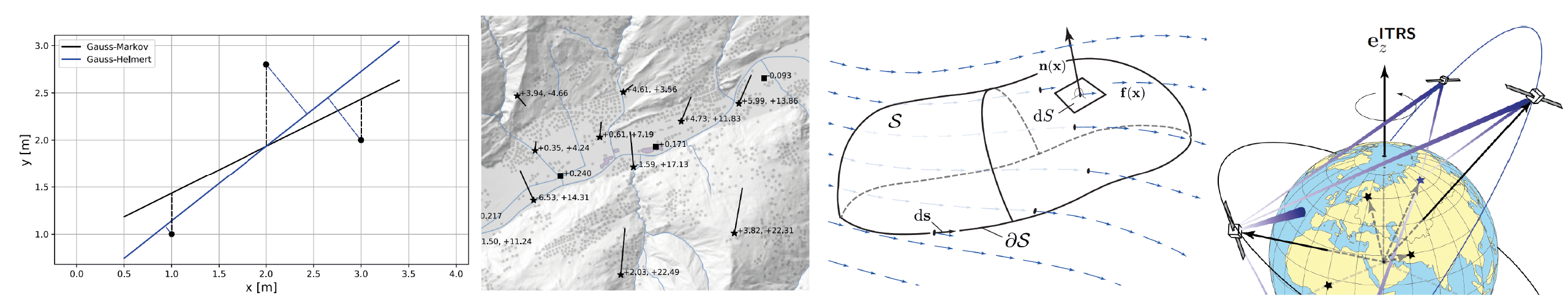 - Modéliser des observations géodésiques à l’aide de méthodes d’estimation avancées (Gauss-Helmert, collocation par moindres carrés).